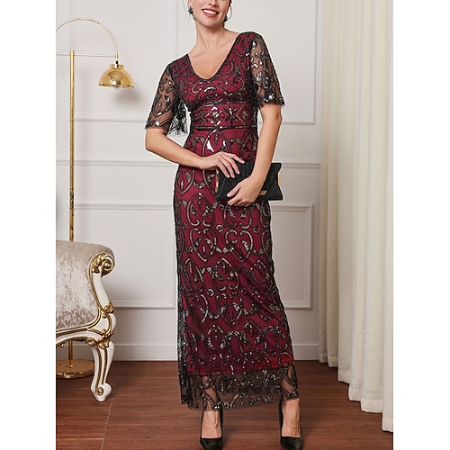 Retrò Vintage Anni Ruggenti Anni 1920 Lunghezza alla caviglia Abito da sera Maniche corte Il grande Gatsby Paillettes Scollo a V Costume Per donna Natale Carnevale Mascherata Cocktail party Festa a