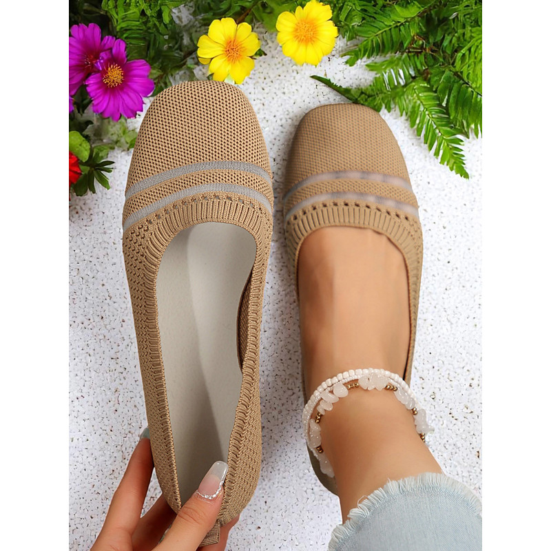 Women's Red Breathable Flyknit Ballet Flats with Striped Design – Lightweight Casual Shoes for Daily Wear, Travel or Garden Walks