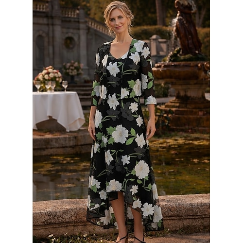 Linea ad A Lunghezza alla caviglia Vestito da Festa Abito da Cocktail Abito da invitata a nozze Abito da cerimonia per signora Manica 3/4 Scollo a V Elegante Minimalista Ospite di nozze Festa di