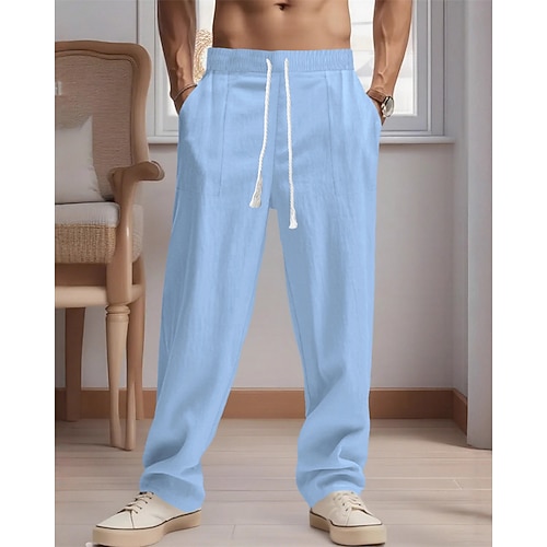 Per uomo Pantaloni di Lino Pantaloni Pantaloni Estivi Pantaloni da Spiaggia Tasca Elastico in vita Semplice Comodità Traspirante Vacanza Quotidiano Ferie Hawaiano Boho azzurro cielo Nero