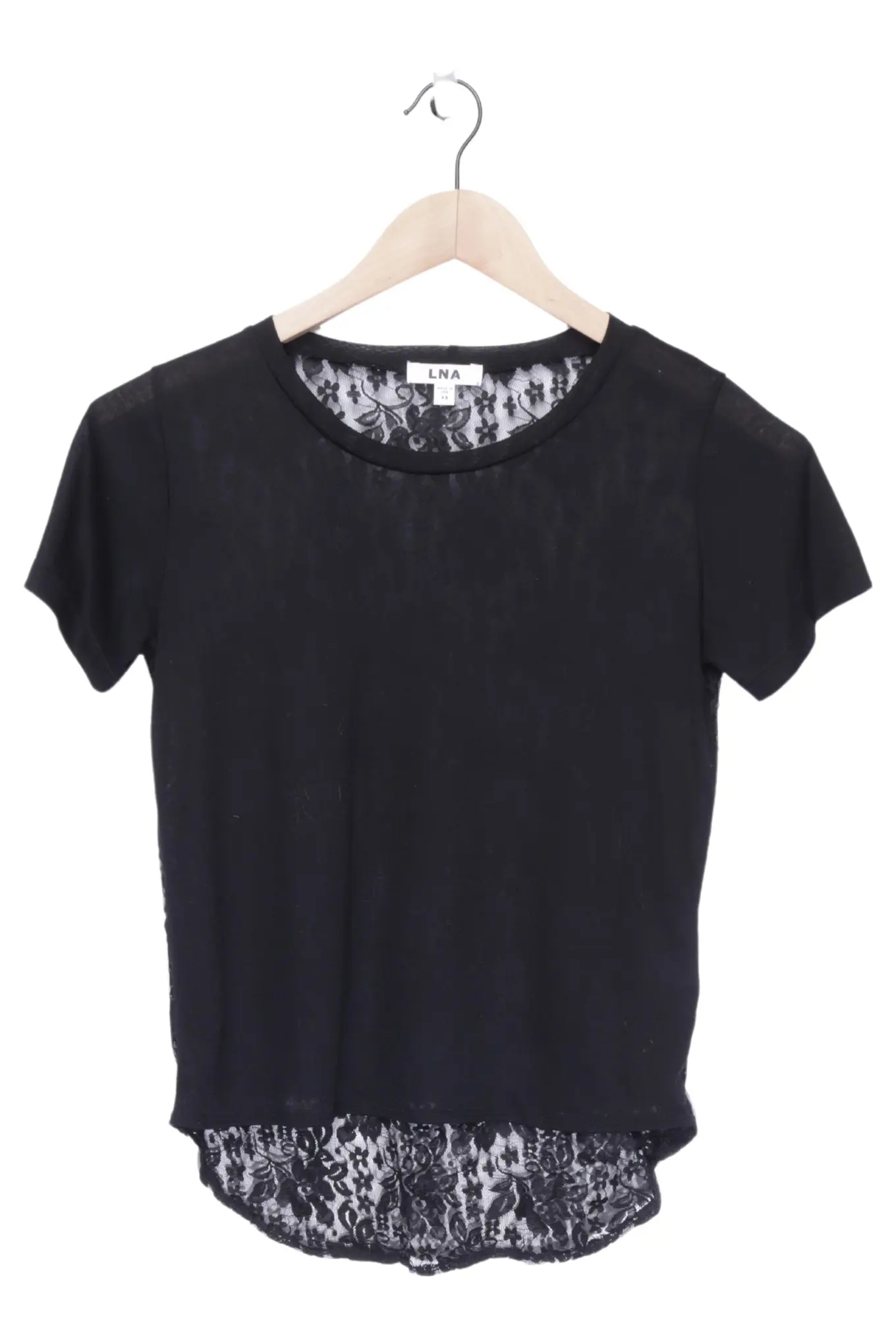 LNA Damen T-Shirt XS Schwarz mit Spitze Kurzarm Casual
