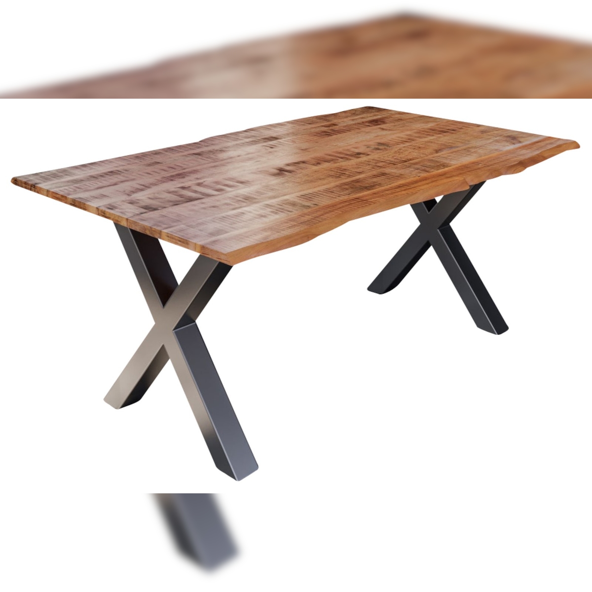 Esstisch Baumkante Massiv Mango naturfarben 120 x 80 silber X-Gestell DORA