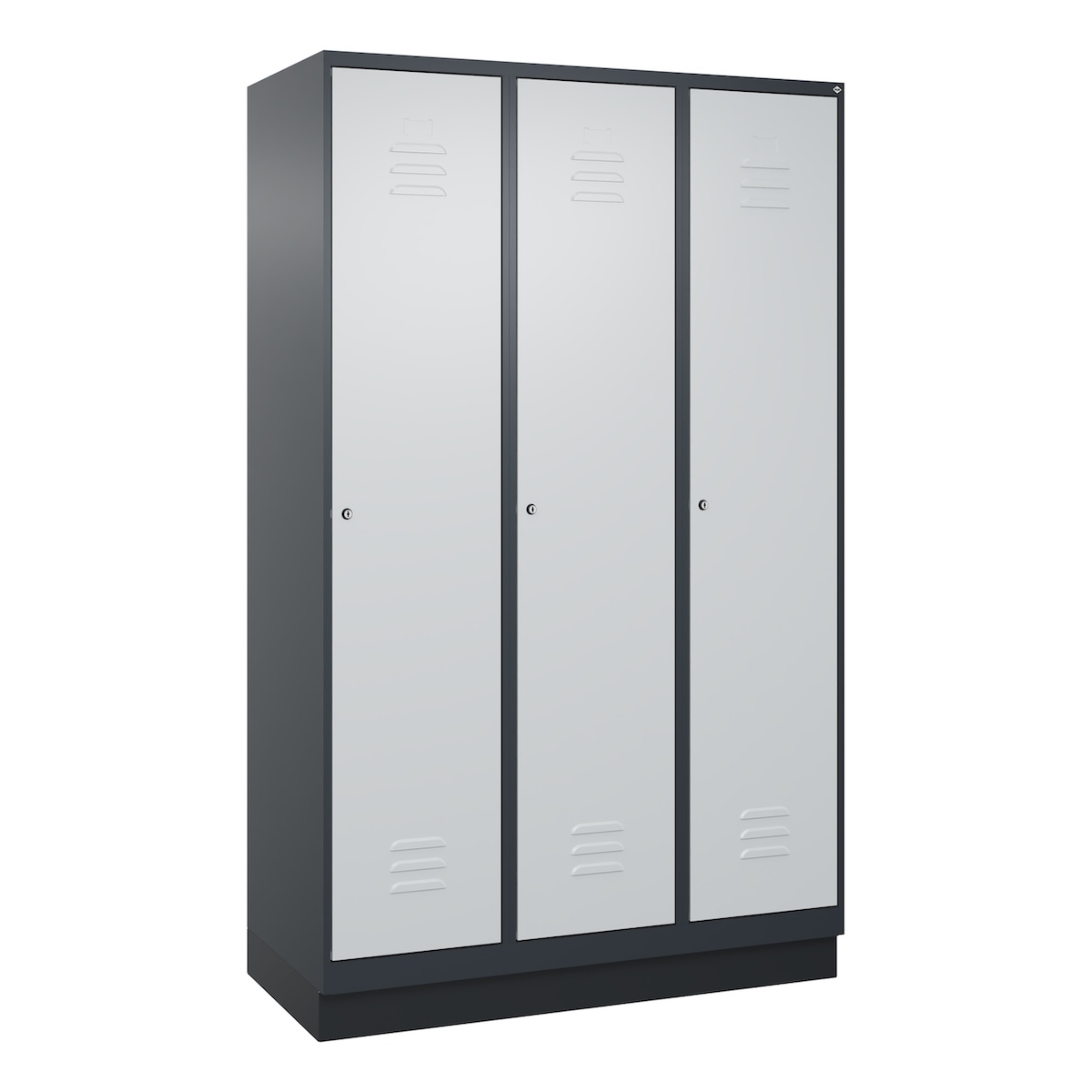 C+P Spind Classic PLUS, Sockel, 3 Abteile, HxBxT 195x120x50cm, Zylinderschloss, Anthrazit/Hellgrau von PROREGAL