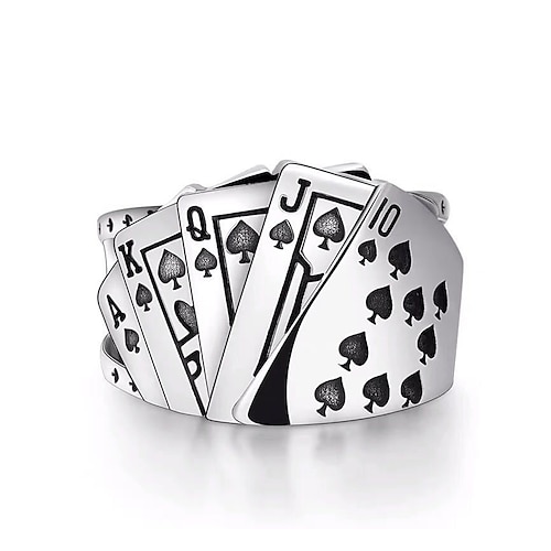 Herren-Pokerring aus Legierung – verstellbares Band im Vintage-Spielkartendesign für Gothic, Punk-Stil, Party und Freizeitkleidung