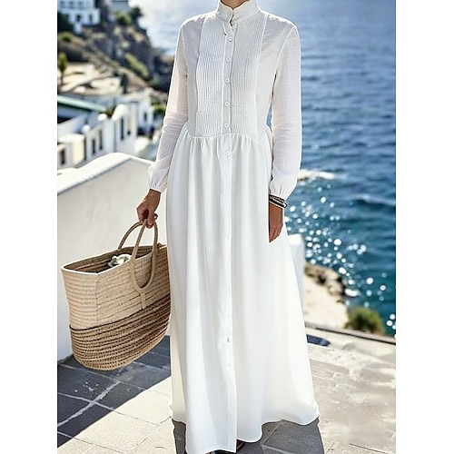 Per donna Abito maxi Abito Bianco Abito da Spiaggia Abito Estivo Elegante Moda Moderno All'aperto Vacanza Uscire Vestibilità regolare Semplice Manica Lunga Collo Alto Bianco Estate Primavera