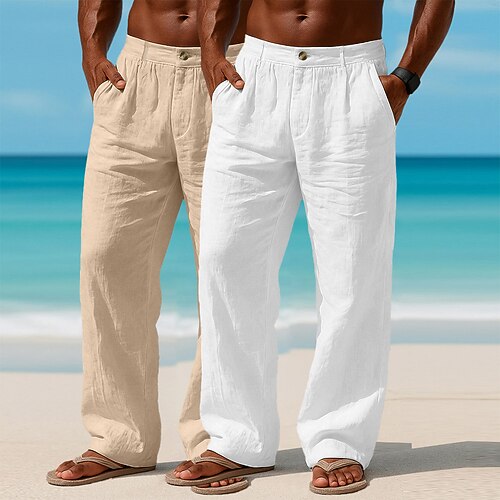 Per uomo Pantaloni di Lino Pantaloni Pantaloni Estivi Pantaloni da Spiaggia Tasca Frontale Gamba Dritta Semplice Comodità Traspirante Affari Casuale Quotidiano Moda Essenziale Nero Bianco