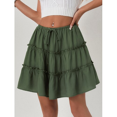 Per donna Gonna da vacanza Moda Casual Mini Vita Alta Gonne Semplice Coulisse Volant Elasticizzato Quotidiano Streetwear Nero Bianco Arancione Marrone Estate Poliestere