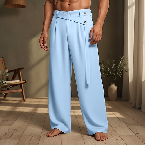 Per uomo Pantaloni di Lino Pantaloni Pantaloni Estivi Gamba Dritta Semplice Comodità Traspirante Lunghezza intera Casuale Quotidiano All'aperto Vacanza Moda Nero Bianco Inelastico