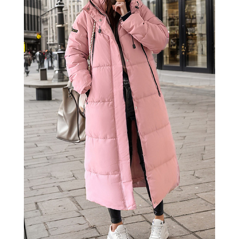 Women's Puffer Jacket Quilted Jacket Warm Comfortable Zipper Pocket Casual Plain Outdoor Vacation Home Daily Wear Long Hooded Regular Fit Long Sleeve Outerwear Blue Black White Fall Winter