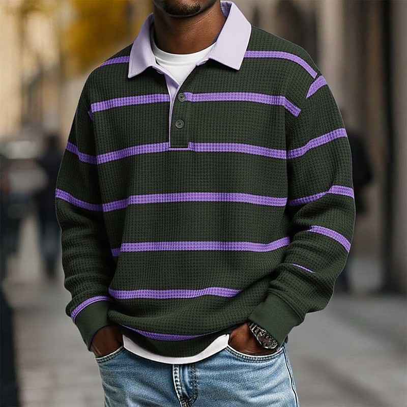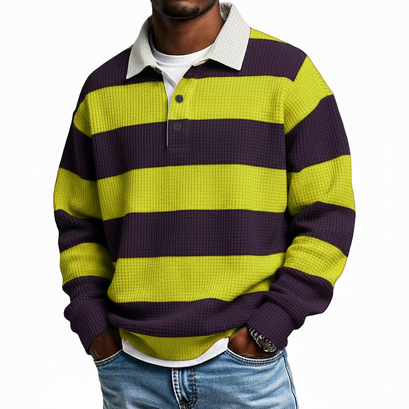 Men's Horizontal Stripes Waffle Polo Shirts Rugby Polo Textured Long Sleeve Polo Shirts Lapel Sportswear Casual School Athleisure Daily Wear 3D Print Spring Fall Winter Blue Yellow Purple