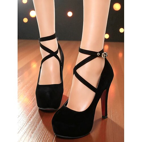 Per donna Tacchi Scarpe da sera Feste Giornaliero Serata Tinta unica Tinta unita Fiocco Fibbia Quadrato Punta tonda Elegante stile sveglio Informale Scamosciato Listino alla caviglia Nero Rosso Beige