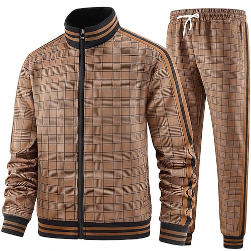 Per uomo Plaid Geometrico 2 pezzi Set di felpe 3D Tuta Felpe con cerniera Manica Lunga Pantaloni lunghi Collo alla coreana Casual Quotidiano All'aperto Vacanza Sportivo Con zip Stampa 3D Primavera