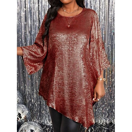 Capodanno Per donna Top con cuciture in pizzo Elegante Manica Lunga Girocollo Top Regolari Quotidiano Ospite di nozze Abbigliamento da sera Ricamato Vino Marrone Verde Autunno Inverno