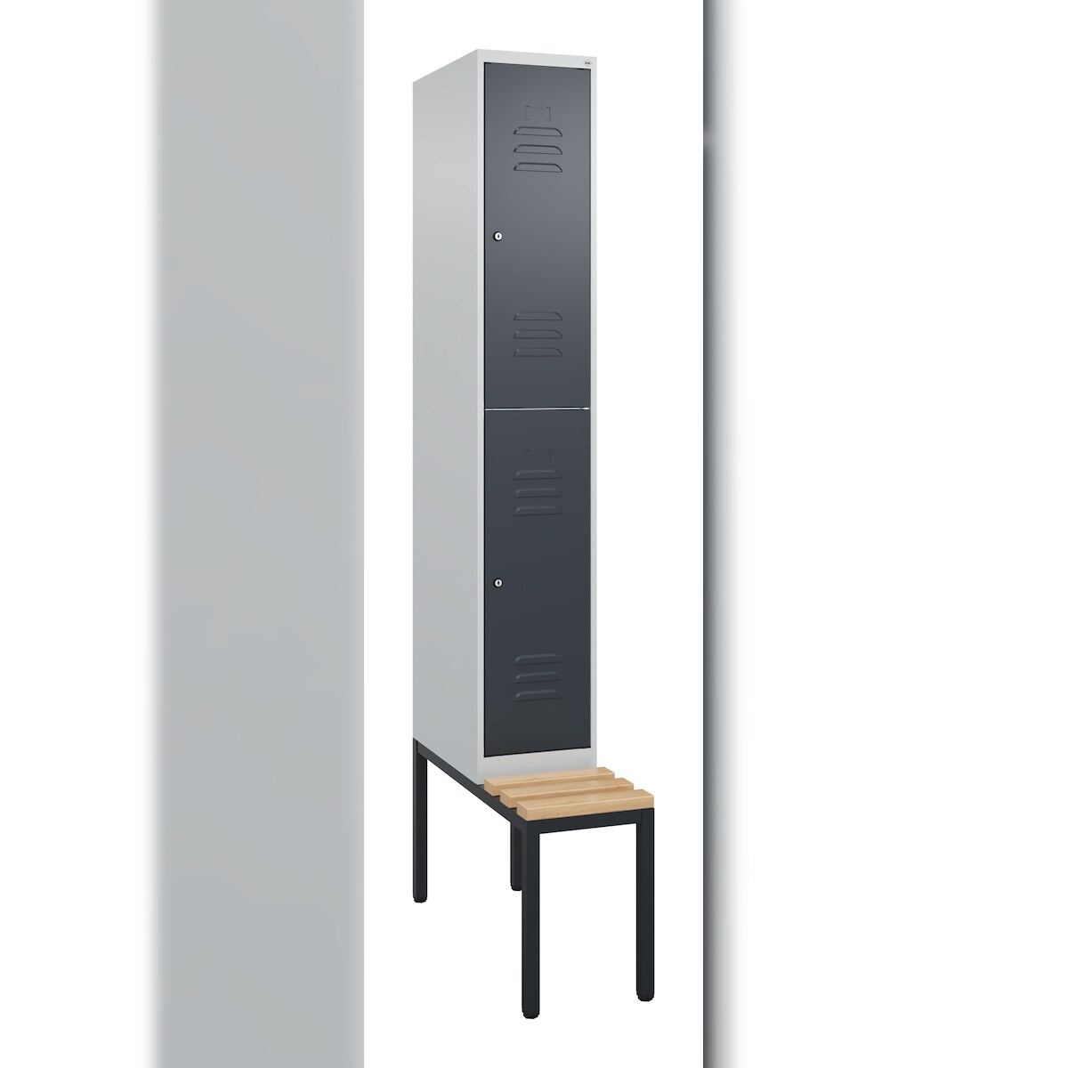 C+P Spind Classic PLUS, Buche untergebaute Sitzbank-Harthol, 2 Abteile, HxBxT 212x30x82cm, Zylinderschloss, Hellgrau/Anthrazit von PROREGAL