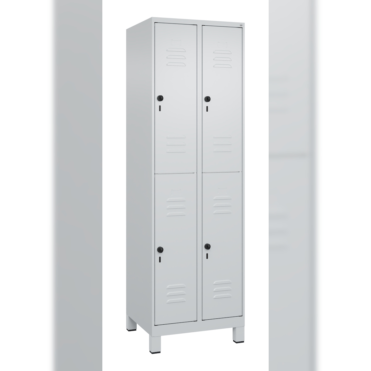C+P Spind Classic PLUS, Füßen, 4 Abteile, HxBxT 195x60x50cm, Sicherheitsdrehriegel, Hellgrau/Hellgrau von PROREGAL