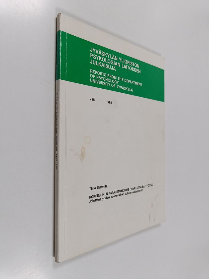 Timo Saloviita : Kokeellinen tapaustutkimus soveltavassa työssä : johdatus yhden koehenkilön tutkimusasetelmiin