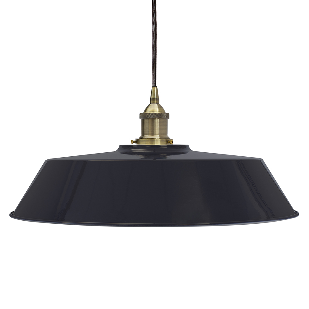 Soho Lighting Navy Blue Large Chancery Painted Pendant Light with Antique Gold Lamp Holder and Brown Twisted Cable