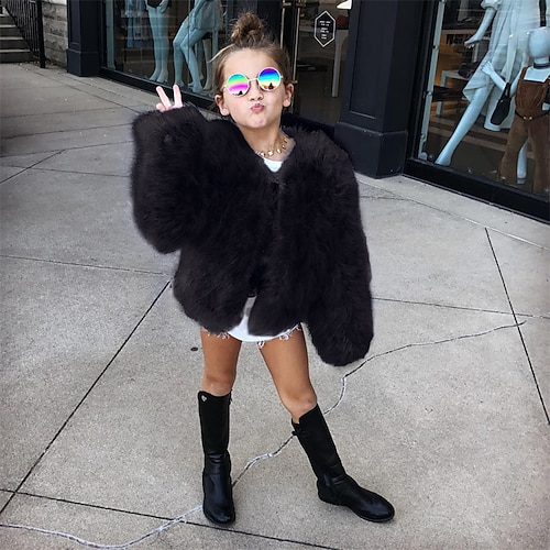 Bambini Ragazze Cappotto in Pelliccia Sintetica Tinta unica Moda Scuola Cappotto Capispalla Dai 4 anni in su Autunno Nero Bianco Cammello