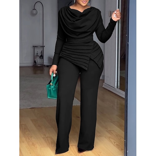 Per donna Normale Tuta Elegante Tinta unica Manica Lunga Gamba larga Girocollo Vita alta Vacanza Quotidiano Vestibilità regolare Nero Vino Marrone Primavera