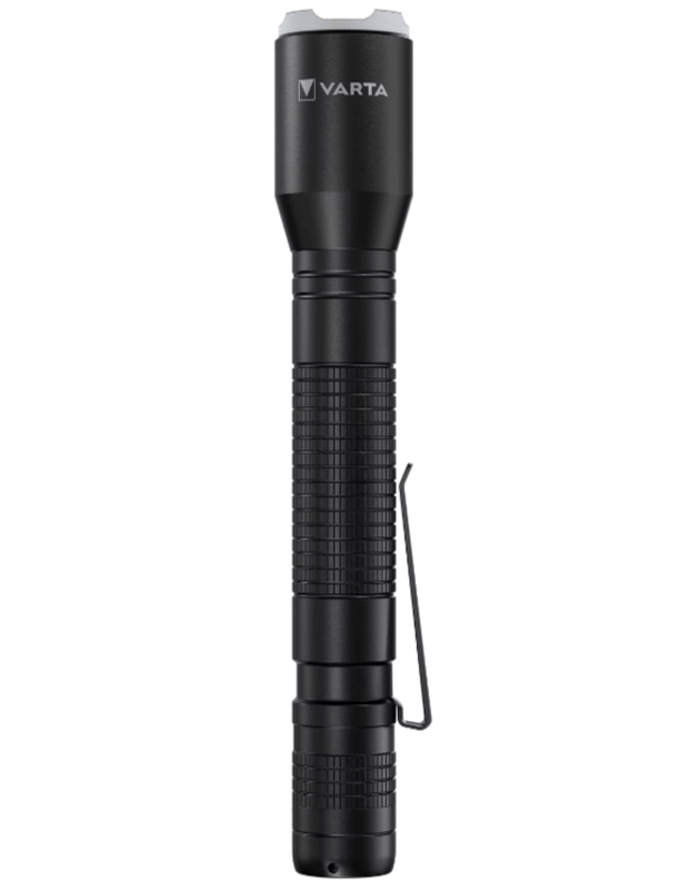 VARTA LED Taschenlampe mit 2x AA Batterien, Aluminium Licht F20 Pro Licht, Lampe mit drei Lichtmodi, Taschenlampe mit Aluminiumgehäuse, Strukturierter Griff, Stoßfest [Energieklasse A+]