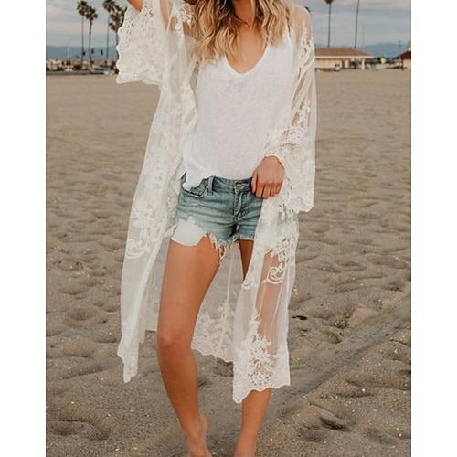 Per donna Costumi da bagno Copricostume Costume da bagno Orlo con frange Taglio Vacanza Abbigliamento da Spiaggia Ombre Scollo a V Manica Lunga Costumi da bagno