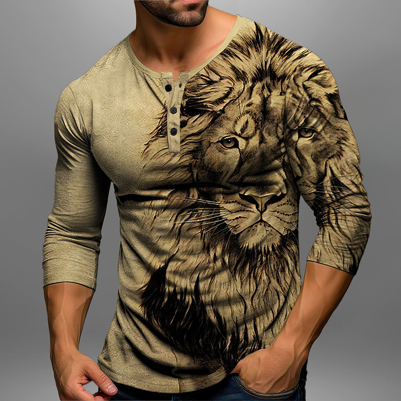 Men's Graphic Lion Henley Shirt Long Sleeve 3D Print Fashion Daily Casual Casual Holiday Going out Spring Fall Blue Brown Green Gray Henley Henley T-Shirt