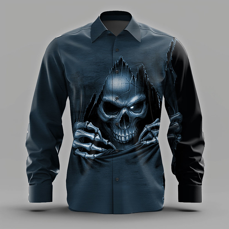 Men's Skull Grim Reaper Skeleton Shirt Button Up Shirt Long Sleeve Dark Punk Gothic Style Holiday Streetwear Summer Spring Turndown 3D Print Collared Shirts Black Wine Green Dark Blue