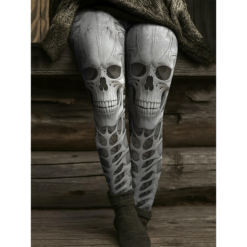 Women's Leggings Vacation Vintage Ethnic Style Ankle-Length High WaistPantsHalloween Skull 3D Print Quick Dry Breathability Soft Stretchy Formal Outdoor Vacation Red Purple Orange Green Fall Regular