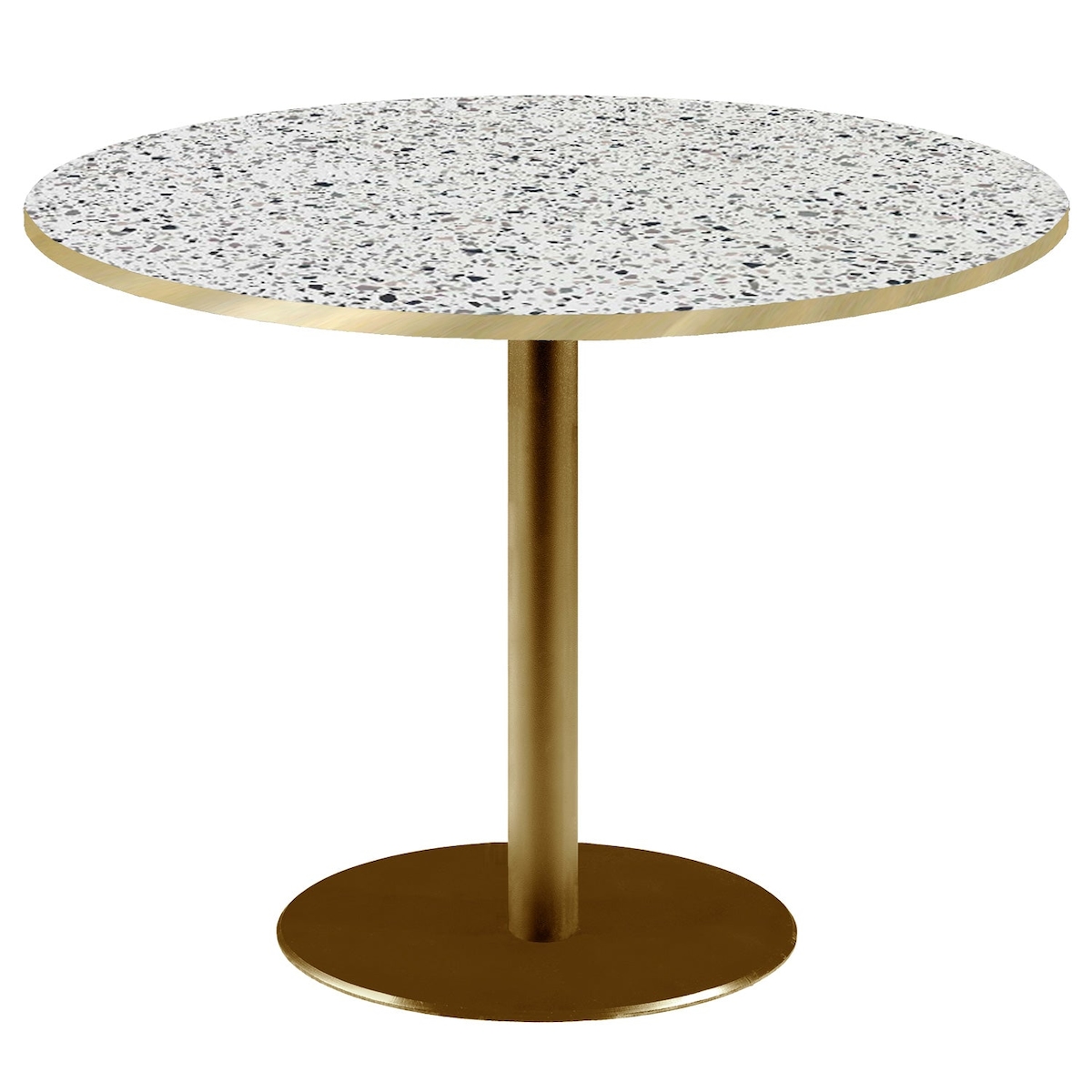 RestooTab - Tisch Rome XL goldmetallic Ø120 Dekor Terrazzo white chip Kanten messingfarben