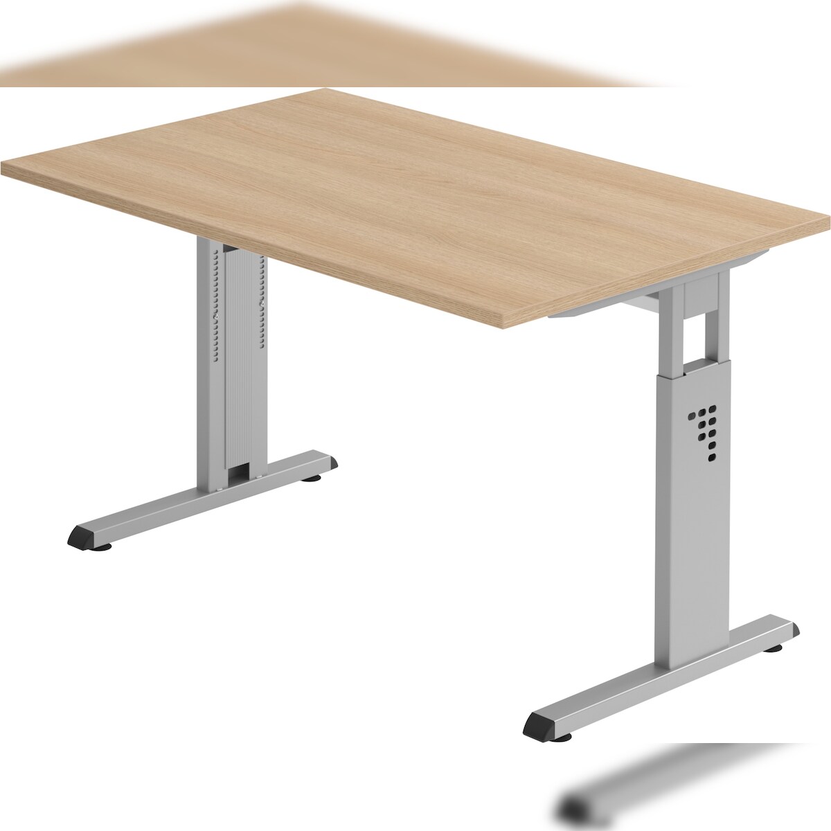 bümö höhenverstellbarer Schreibtisch O-Serie 120x80 cm in Eiche, Gestell in Silber - PC Tisch klein für's Büro manuell höhenverstellbar,