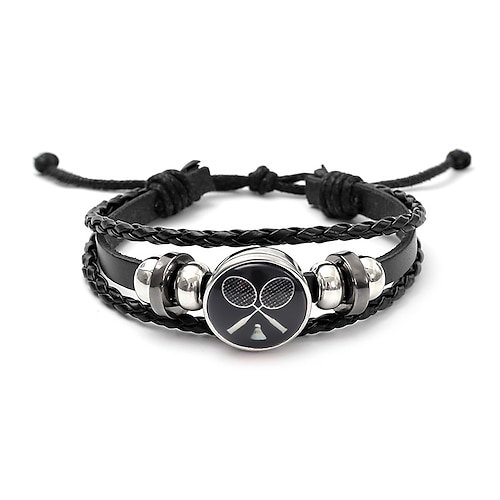 Braccialetto sportivo multistrato in pelle, cinturino regolabile in corda intrecciata per tifosi di calcio, basket e baseball, gioiello sportivo ideale come regalo per bambini, ragazzi e adulti,