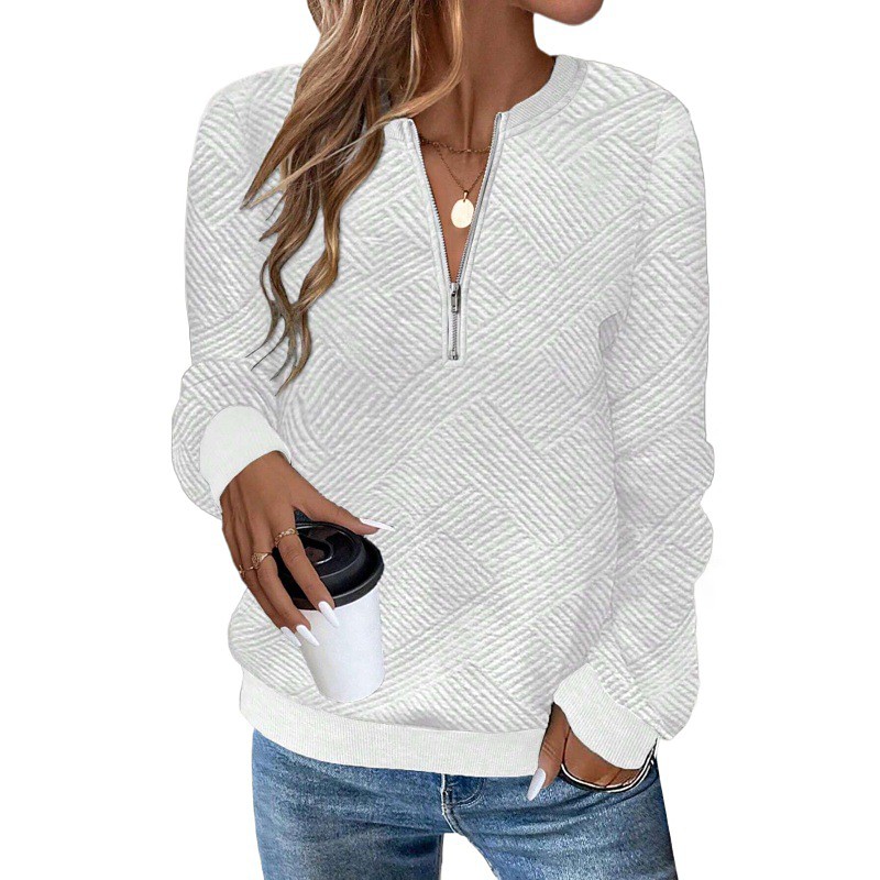 Women's Texture Sweatshirt Pullover Plain Streetwear Casual Comfy Long Sleeve V Neck Regular Tops Street Holiday Going out Half Zipper Quarter Zipper Quarter Zip Black White Pink Gray Fall