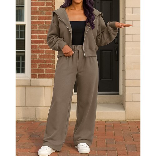 Per donna Felpa con cappuccio e zip Top attillato Tuta da 2 pezzi Baggy con tasca Tinta unita Completo Abbigliamento Autunno Rosa Viola Escursionismo Lavoro All'aperto Manica Lunga Sport
