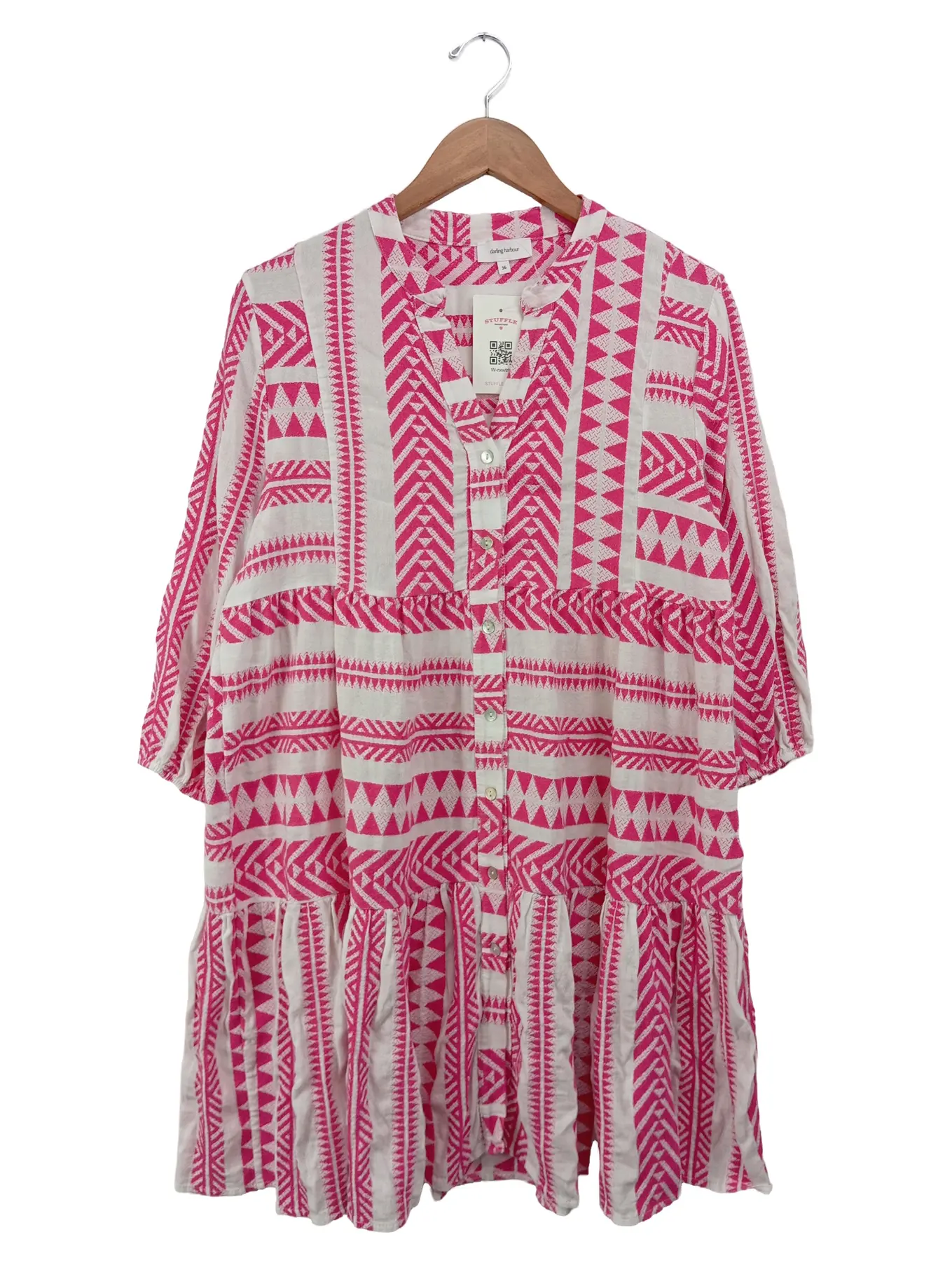 DARLING HARBOUR Hemdblusenkleid 36 Weiß Pink Bohemian