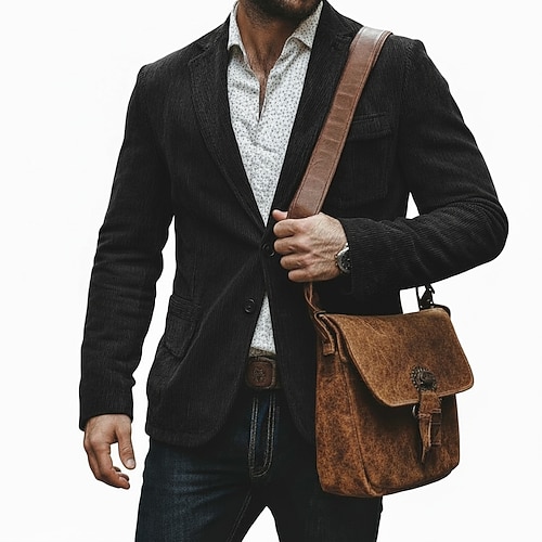 Per uomo Giacca in Velluto a Coste Giacca blazer Colletto ad incastro Vintage Classico Ufficio A righe Tinta unita Blazer Nero Borgogna Marrone Vestibilità su misura Monopetto Due Bottoni