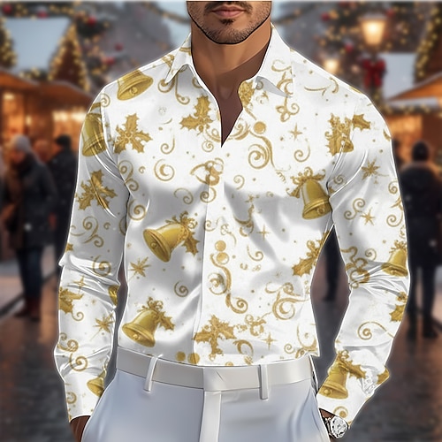 Natale Per uomo Stampa Floreale Palline di Natale Camicia Camicia in raso Camicia elegante Manica Lunga Moda Casual Feste Ferie Primavera Autunno Collo ripiegato Stampa 3D Camicie con bottoni bianco