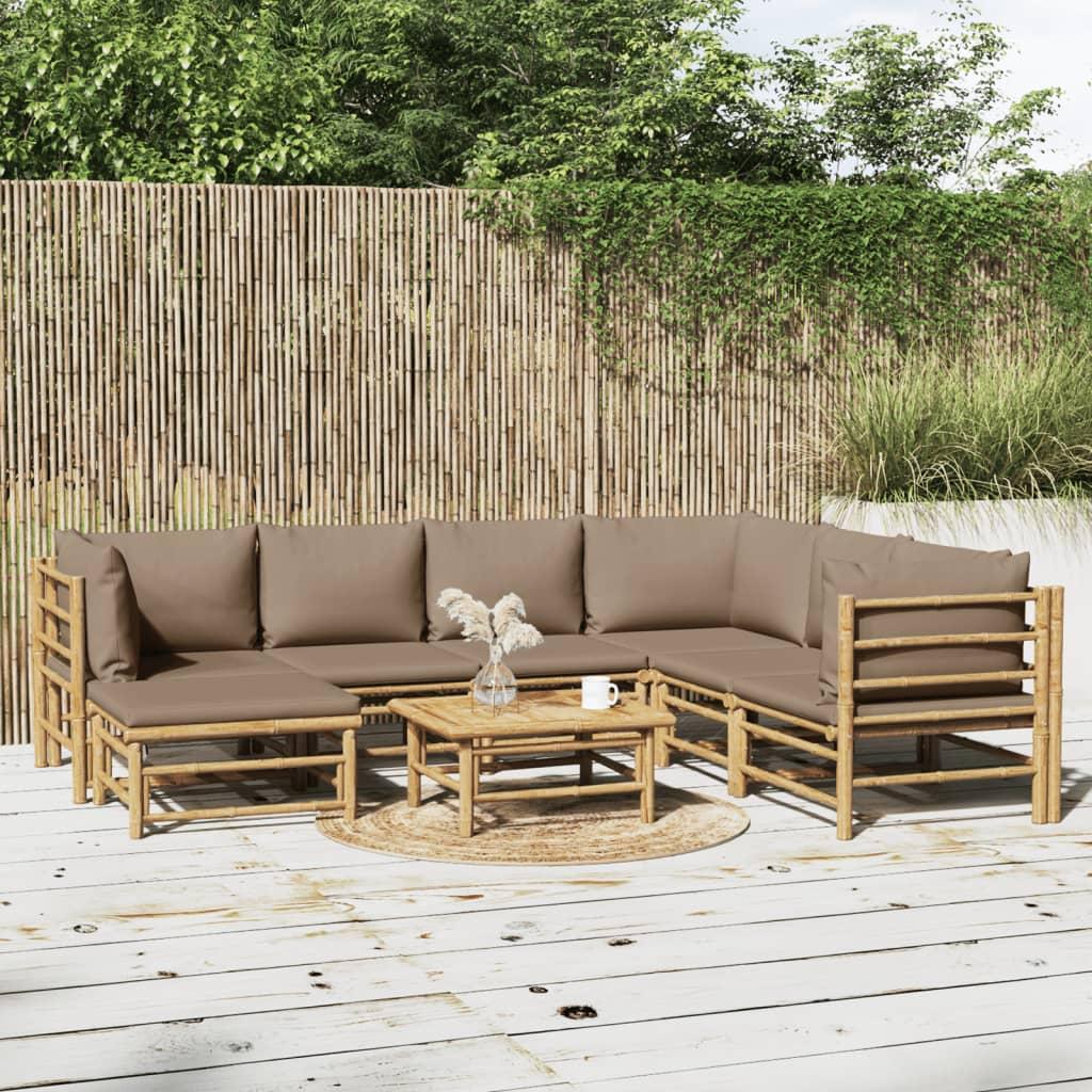 Loungesæt til haven 7 dele med grønne hynder bambus