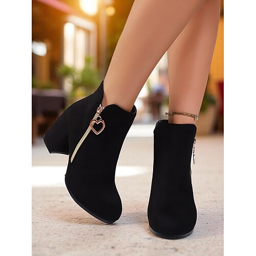 stivaletti da donna con tacco a blocco e ciondolo a forma di cuore rosso - stivaletti in finta pelle scamosciata con cerniera per Natale, appuntamenti serali abbigliamento casual quotidiano