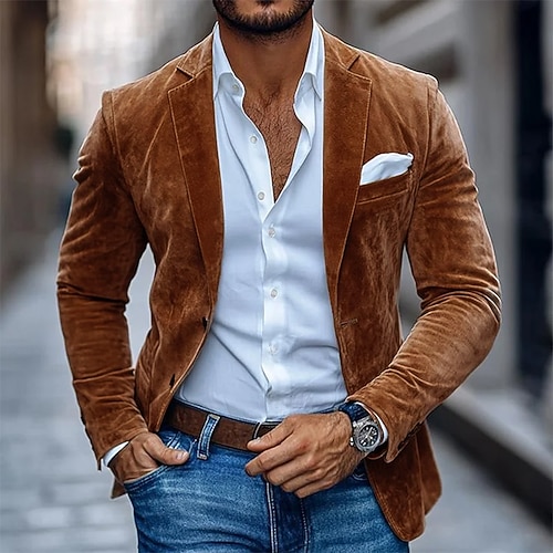 Per uomo Blazer in finta pelle scamosciata Giacca blazer Casuale Affari Lavoro Elegante Vintage Primavera Autunno Tergal Tinta unica Monopetto Giacca Marrone Kaki