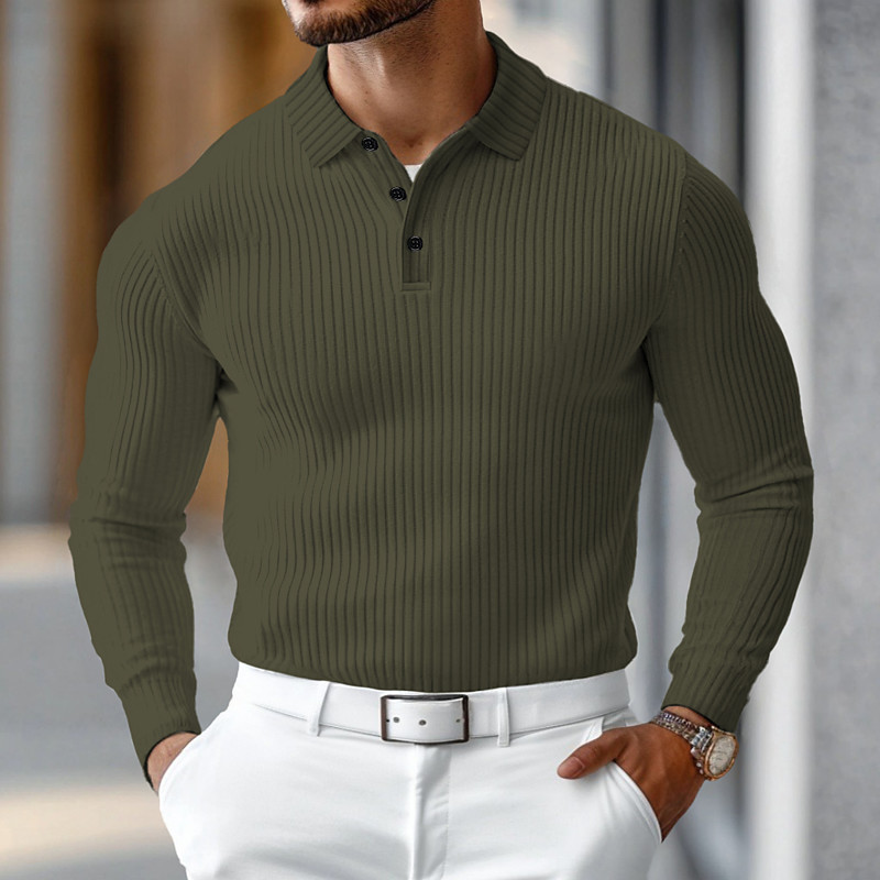 Men's Rib Knit Top Textured Business Casual Ribbed Polo Collar Long Sleeve Fashion Basic Solid Color Knitting Fall Winter Slim Fit Dark Grey Black White Burgundy Navy Blue Dark Green Rib Knit Top