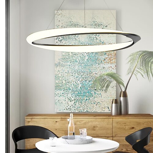 Lampada a sospensione a led da 60 cm Design circolare ad anello a 1 luce dimmerabile Finiture verniciate in alluminio Lussuoso stile moderno Sala da pranzo Camera da letto 110-240 V