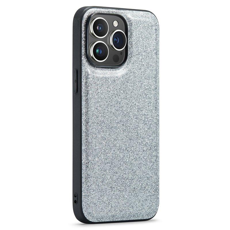 DG.MING Mobilskal till iPhone 15 Pro PU Läder + PC + TPU Glitter Silver