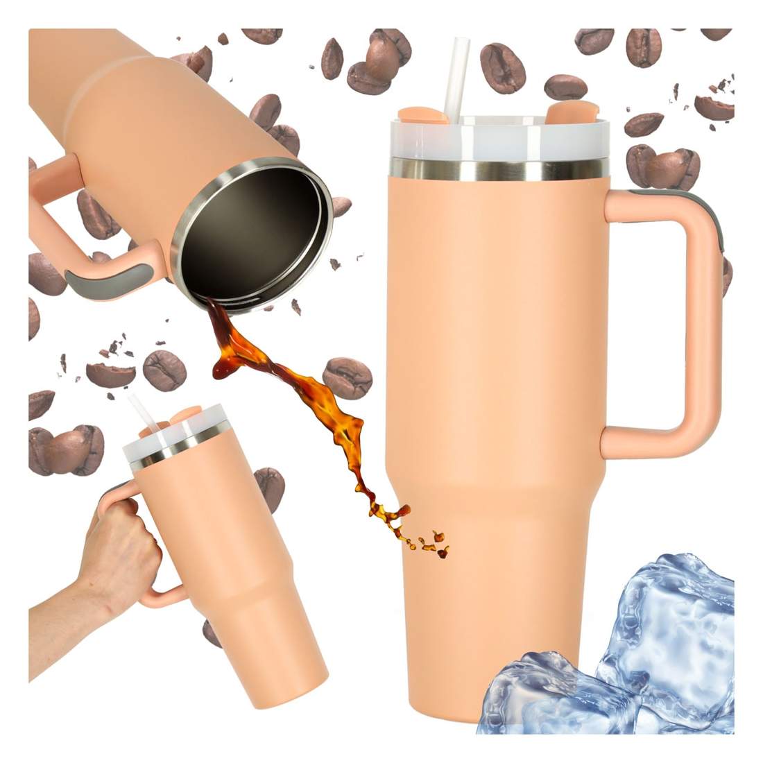 Termisk krus med sugerør og håndtag – 1200 ml Powder Pink