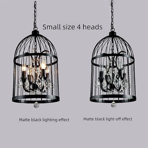 Lampada a sospensione a led vintage, ristorante, gabbia per uccelli, lampadario di cristallo, lampada per casa, soggiorno, villa, lampada in ferro arrugginito, luci
