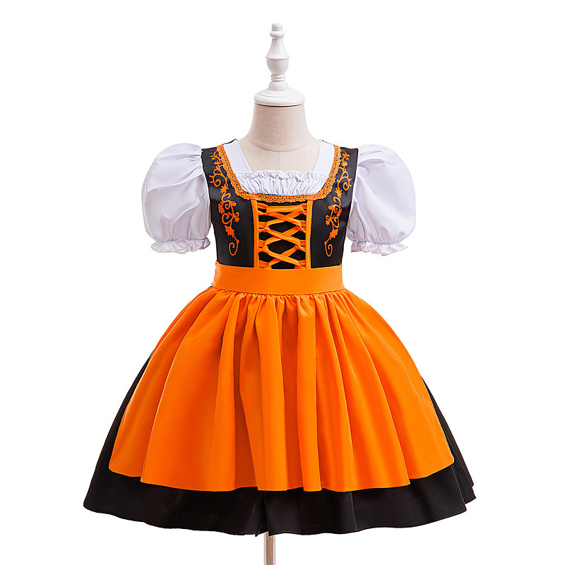 Kids Girls' Party Dress Color Block Short Sleeve Special Occasion Halloween Party Halloween Custome Sweet Polyester Summer Spring Fall 6-12 Y Orange