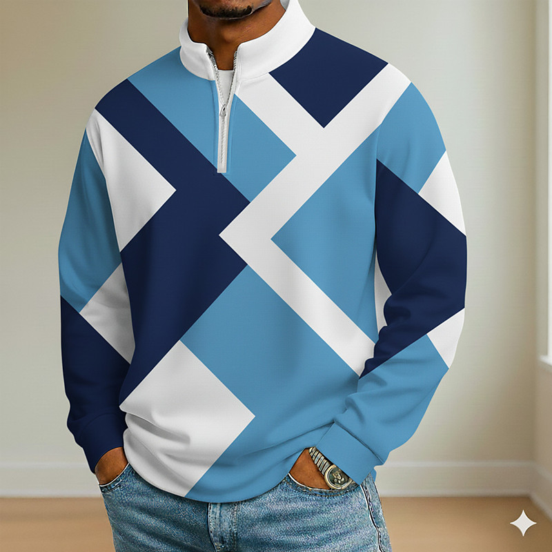 Men's Color Block Geometic Polo Long Sleeve Standing Collar Athleisure Vacation Athleisure Casual Daily 3D Print Spring Fall Blue Blue 1 Green
