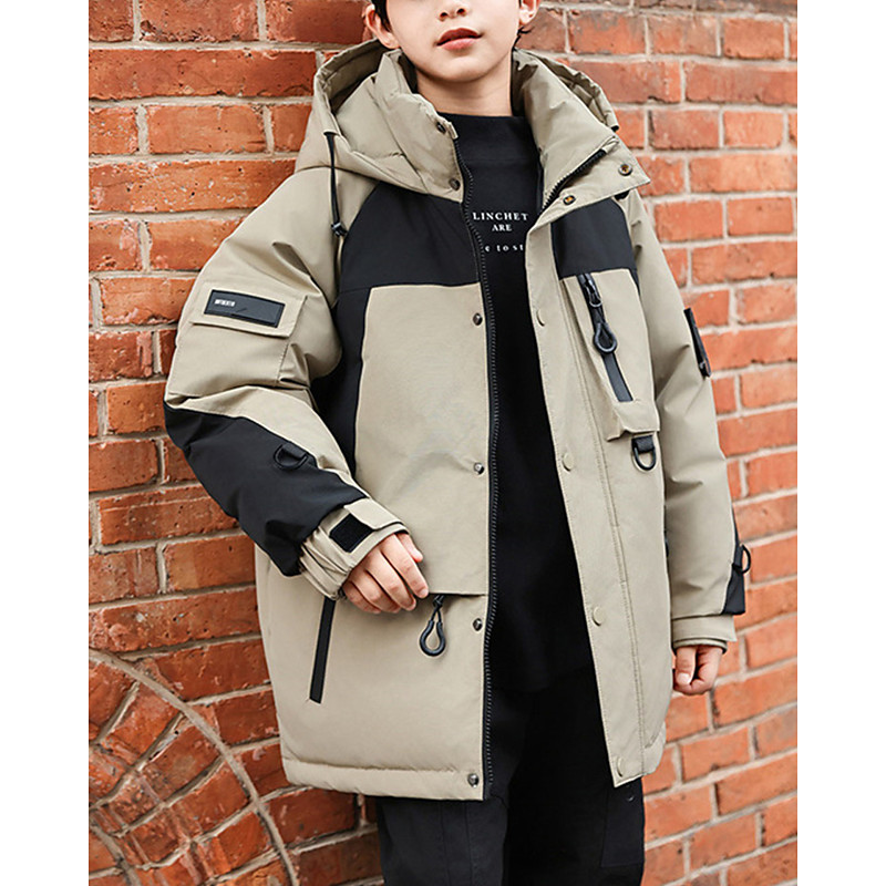 Kids Boys' Down Jacket Outdoor Jacket Outerwear Color Block Long Sleeve Keep Warm Windproof Coat Casual Daily Basic Black Khaki Gray Fall Winter 6 years