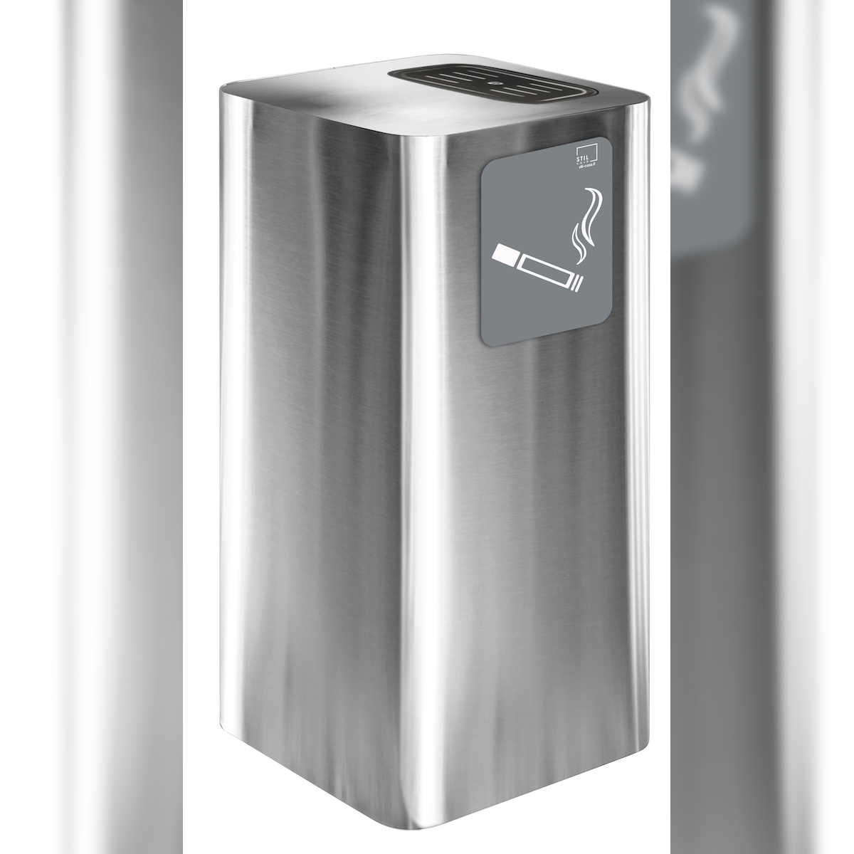 Stil Casa PURE Aschenbecher, Edelstahl, 30x30xH65 cm, satinierte Abdeckung, Piktogramm, Schale mit Obergrill, satiniert.