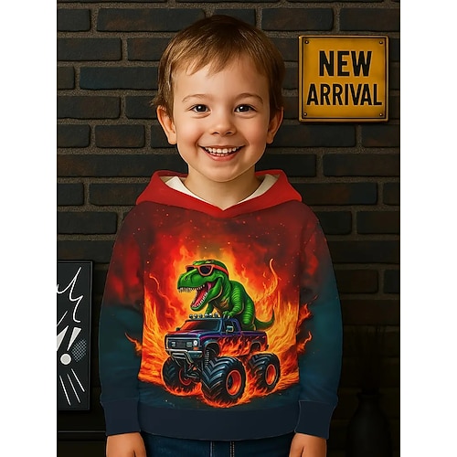Unisex Jungen 3D Grafik Dinosaurier Kapuzensweatshirt Pullover Langarm 3D-Druck Frühling Herbst Sport Mode Streetwear Kinder 4-12 Jahre Mit Kapuze Outdoor Lässig Täglich Normale Passform