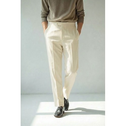Uomo Cotone Lino Pantaloni Eleganti Pantaloni casual Affari Abbigliamento da casa Elegante Moda Casual Nero Bianco Blu marino scuro Primavera Estate Pantaloni Tinta unica Vestibilità regolare Lungo